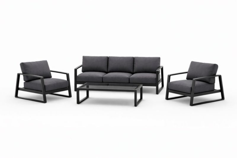 Set esterno 4 pezzi con divano a 3 posti e poltrone in tessuto grigio