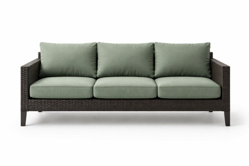 Divano a 3 posti in rattan con cuscini verde
