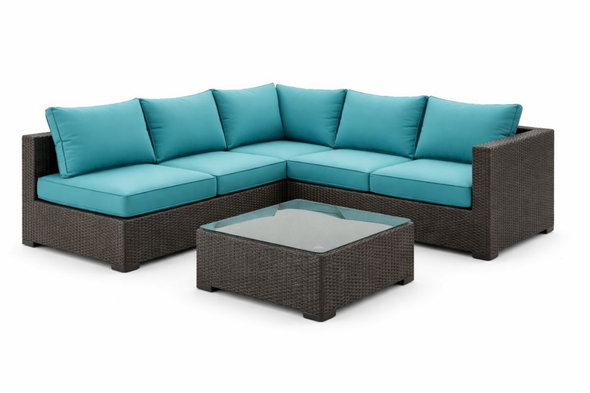 Elenco prodotti: 1 divano angolare componibile, 1 tavolino con piano in vetro, cuscini rimovibili